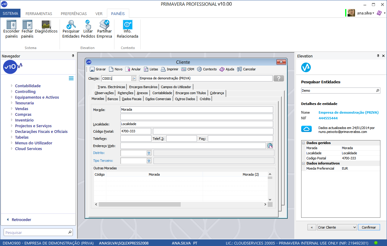 Graças a esta integração, basta introduzir o NIF e automaticamente o sistema preenche as fichas de clientes, fornecedores e outras entidades.
